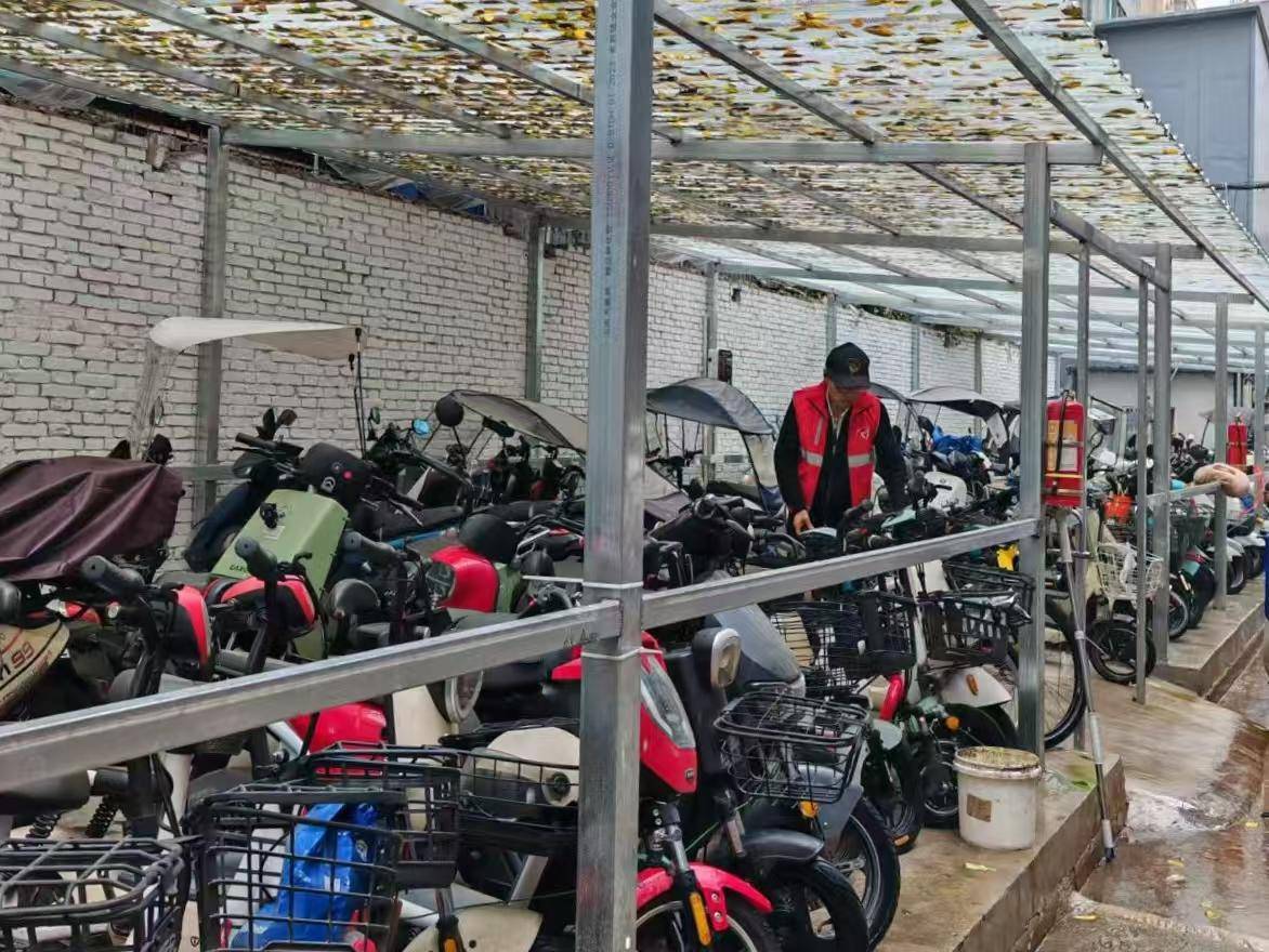 在今年8月的“微光守护”好管家月度例会上,社区着重推动解决这个问题。随后,社区和小区物业相关负责人经过多次协商和现场调查,确定解决方案:拆除1号楼和5号楼后的旧平房,腾出300多平方米场地新建智能充电车棚。方案获确定后,社区携手小区物业于8月10日启动施工,从清理场地、地基浇筑到安装顶棚,各项工作有序进行,终于在9月底顺利完工,给居民送来一份“国庆节大礼”——新增可容纳120多辆电动自行车的智能充电车棚,解决居民停车难题,显著提升小区环境。