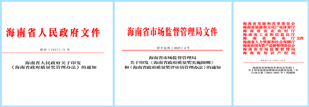 质量政策制度持续健全。完善质量激励机制,修订《海南省政府质量奖管理办法》及配套制度。规范公共场所公共信息标志标准化建设,修订《海南经济特区公共信息标志标准化管理规定》。加强品牌建设培育,9部门联合印发《促进品牌建设高质量发展三年行动方案(2025-2027年)》。