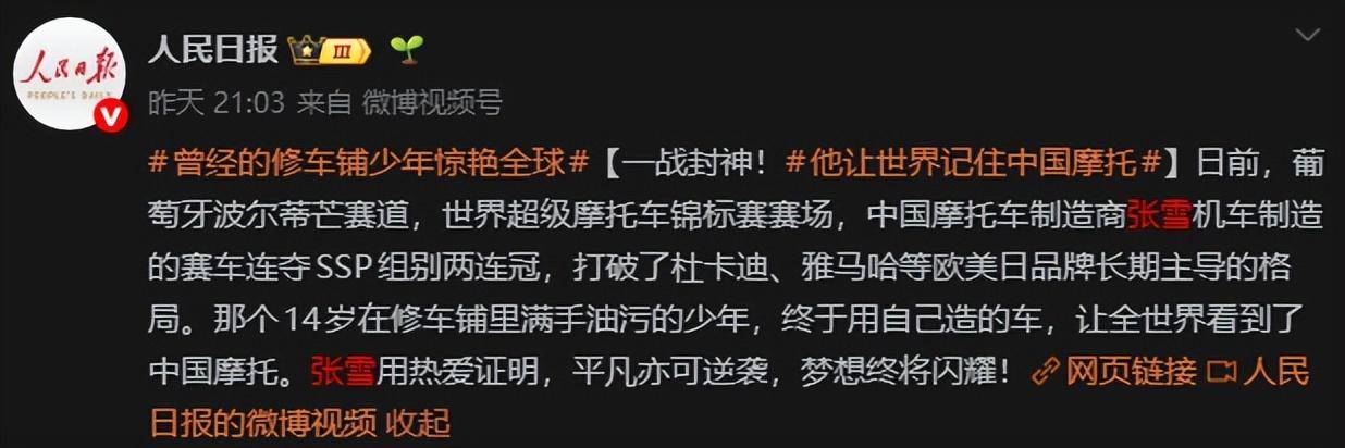 夺冠后的24小时内,人民日报接连三次点名张雪机车,每一次点评,都不只是表扬,更藏着国产品牌发展的关键信号,字字珠玑,发人深省。