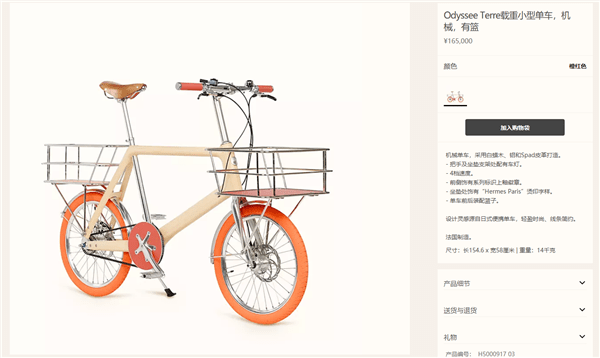 通过访问爱马仕中国区官网,也只能查询到这款自行车,但是点进去购买,会出现页面被删除的提示。
