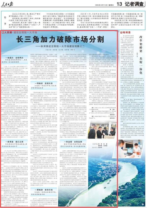 摘要:2025年初发布的《全国统一大市场建设指引(试行)》提出,“鼓励有条件的地区开展区域市场一体化建设”。作为我国经济发展最活跃、开放程度最高、创新能力最强的区域之一,长三角区域市场一体化,有助于为推进全国统一大市场建设开辟道路、创造条件、积累经验。