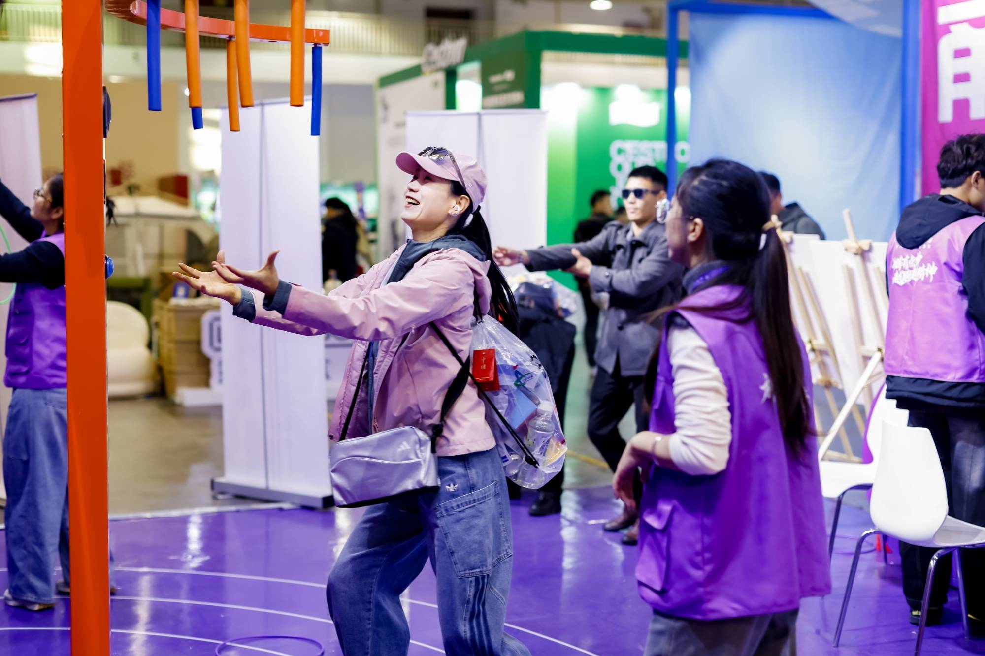 玩咖BOX内,空气中弥漫的咖啡香与烟火气息交织,勾勒出“逛吃”的无限可能。瑞幸咖啡展位前排起长队,前来领料的选手们人手一杯生椰拿铁,畅享惬意;保加优格酸奶站成为亲子家庭的甜蜜打卡点;宁波老字号缸鸭狗烹制的汤圆香甜软糯,历经30年匠心传承的象山永盛乔包子热气腾腾,还有一口便能唤醒童年回忆的吴记奶茶等吸引众多甬马跑者驻足品尝,感受地道甬城风味。体博会特许文创展位前,集章爱好者们纷纷驻足,将天一阁、鼓楼等宁波地标印记收入囊中。海伯集团带来的艺术鱼画“文创”,则以独特创意吸引不少家长带孩子选购。从手冲咖啡到非遗美食,从文创好物到趣味互动,真正实现“一站式吃喝玩购”,让许多跑者感叹:“原本只是来领参赛包的,结果在玩咖BOX逛了一下午,钱包根本捂不住!”