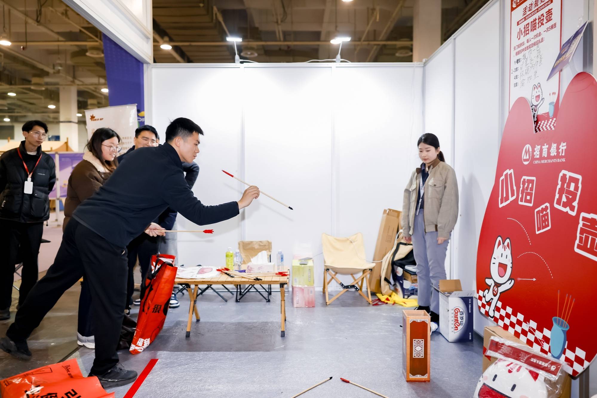 本届体博会展览面积达1.5万余平方米,汇聚本土与国际众多知名品牌,累计接待观众超5万人次,其中马拉松选手及家属占比达65%以上。走进7号馆,迪卡侬打造的“能量竞技场”成为全场人气焦点。高尔夫推杆体验区排起长龙,射箭靶位前围满跃跃欲试的观众,冰壶体验区不时传来欢呼与掌声。“从早到晚,体验项目就没停过,排队的人一直延伸到通道上。”迪卡侬工作人员介绍,三天人流如织,不少家庭都是体验完直接下单购买。