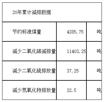 目前以燃烧煤炭的火电为参考,火电每发一度电排放305克二氧化碳、0.0085克二氧化硫、0.0074克氮氧化物、消耗1.23升净水,按照此标准计算,本项目每年及20年的发电周期将实现节能减排效果如下: