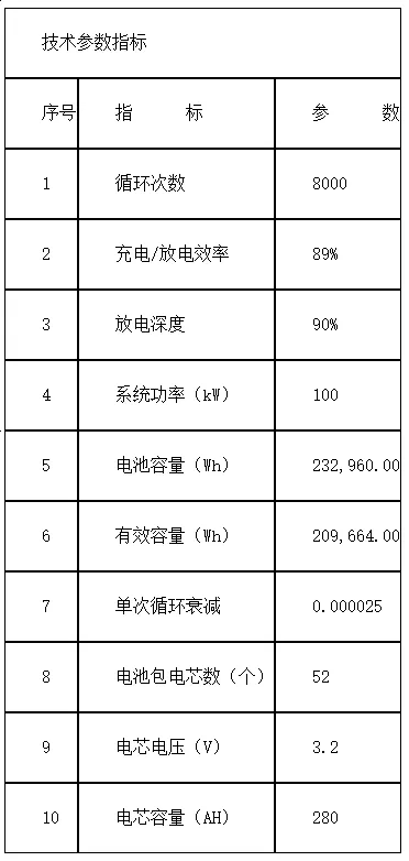 本技术方案配备容量为100kW/233kWh的储能系统。系统由1台电池预制舱、1套能量管理系统组成。通过光伏车棚380V侧配电箱接入380V电网,用于光伏超发时进行充电,在新能源发电不满足负荷时进行放电,并且在电网低谷时段进行充电,在电网高峰时段进行放电,能量管理系统对储能系统进行数据监测、报警,同时进行控制系统充放电,进行削峰填谷、峰谷套利,结合不同月份分时段电价机制、新能源发电功率,进行充放电策略优化,实现收益和新能源消纳最大化。
